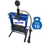 Усилие 10 тонн. Настольный. Ручной. Для запрессовки подшипников, деталей машин, втулок и т.п. в автосервисе, мастерских по ремонту лодочных моторов, велосипедов и т.п. Гидроцилиндр с пуансоном имеет возможность перемещения по всей ширине рамы. Контроль усилия – визуально по шкале манометра. Интервал пуансона 135 мм. Рабочее окно: 400 x 350 мм.