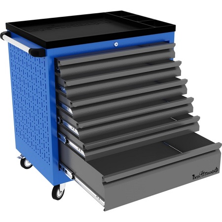 Верстак однотумбовый поставляется в разобранном виде. Нагрузка на столешницу до 600 кг. Стандартный цвет: корпус - серый глянец RAL 7030, ящики и двери тумб - синий RAL 5017. Размеры:855x1800x700 мм. Вес: 89 кг.