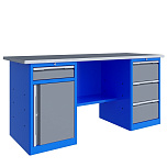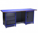 Верстак металлический двухтумбовый, PROFFI-3МД ТПС1Д. Размеры: 2000x830x700 мм, 1 тумба с 3 ящиками и 1 тумба с ящиками и дверью, замок, оцинк. столешница.сталь (6 мм) и фанера (24 мм). Нагрузка на столешницу 1 000 кг.
