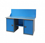 Двухтумбовый. Допустимая нагрузка на столешницу 1000 кг. Опорные элементы выполнены сварными из холоднокатаной стали. Для выполнения сборочных, ремонтных, слесарных, монтажных и других видов работ на производстве, в сервисных центрах, мастерских, гаражах, а также для обучения технологии в учебных заведениях. Комплектуется полкой-стенкой, расположенной под столешницей для удобного размещения габаритного инструмента и оснастки. Размеры верстака: 855x1796x696 мм. Вес: 127 кг. Поставляется в 4 комплектациях на выбор.
