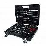 Набор инструментов 1/4" & 1/2" 6-гранный (в кейсе) 85 предметов. В наборе: головки торцевые 1/4", головки с насадкой HEX 1/4", головки с насадкой TORX 1/4", головки с шлицевой насадкой 1/4", головка с насадкой PH 1/4", насадки PZ 1/4", головки торцевые 1/2", свечная головка 1/2", насадка 5/16 HEX 1/2", насадки 5/16 TORX 1/2", насадки 5/16 PH 1/2" для ударной отвертки PH3, PH4, насадки 5/16 PZ 1/2", держатель бит: 1/2х5/16, трещотка 1/4 36 зубцов (резиновая ручка), удлинитель 1/4 50 и 100мм, кардан 1/4", вороток-отвертка 1/4", вороток 1/4" с плавающей головкой, гибкий вал 1/4", трещотка 1/2 36 зубцов, удлинитель 1/2" 125 и 250мм, кардан 1/2", переходник 3/8х1/2 с отверстием, ключи рожково-накидные.