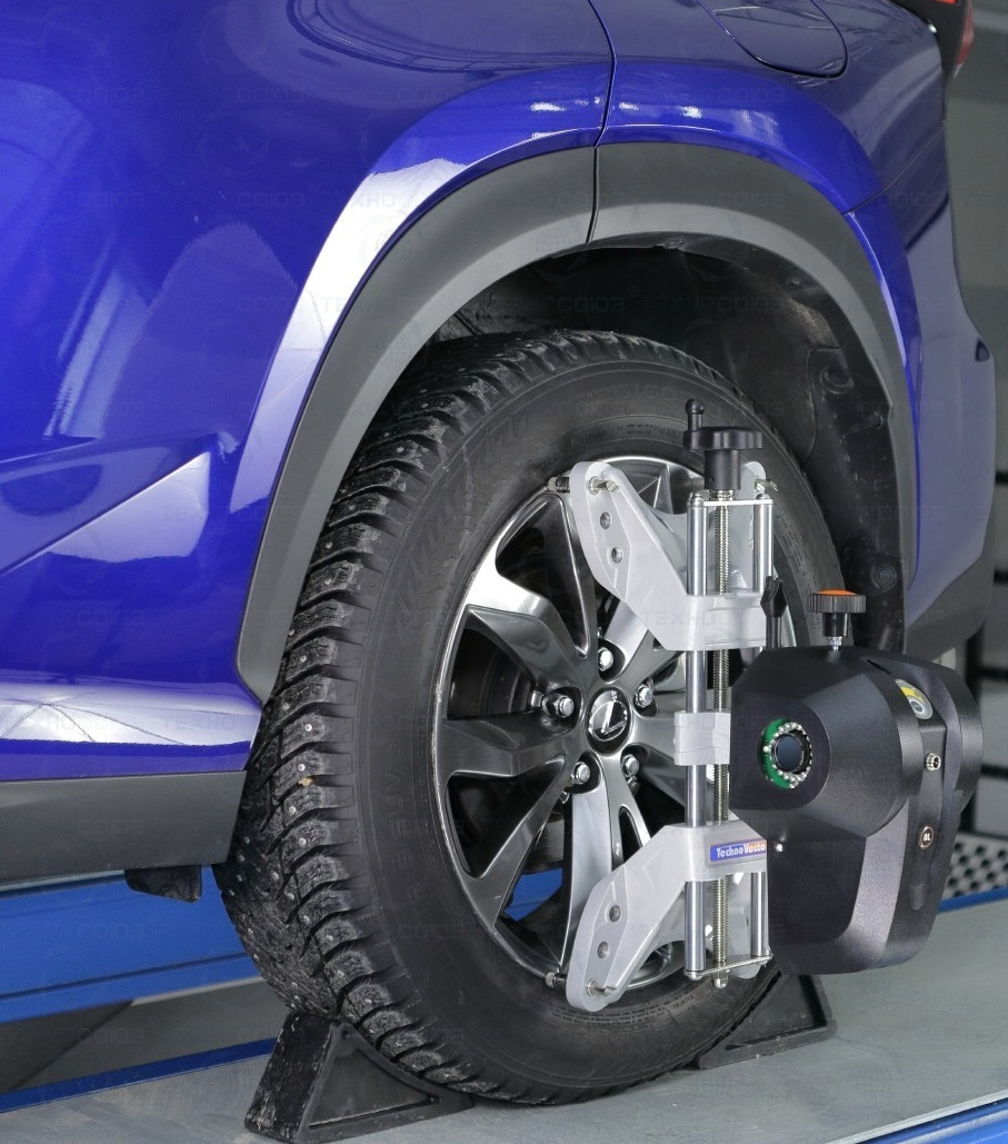 Стойки с установленными в них референсными мишенями монтируются на расстоянии ~700 мм от передней оси колеса автомобиля.