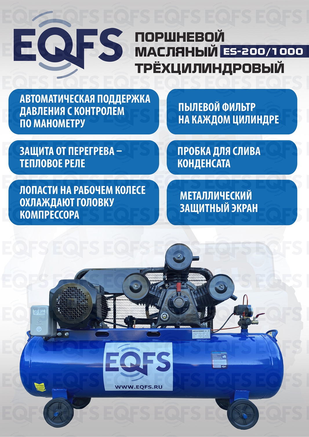 Технические особенности компрессор поршневой ES-200/1000: