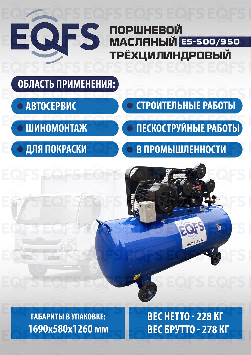 Технические особенности компрессор поршневой ES-500/950: