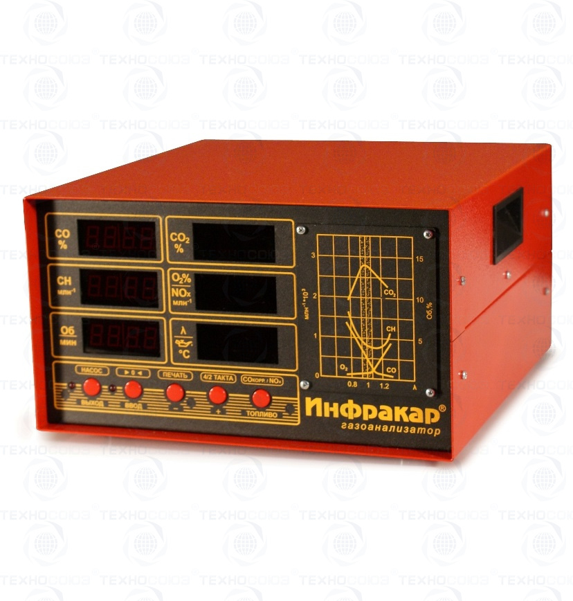 Автомобильный 5-ти компонентный газоанализатор «Инфракар 5М-2.01 предназначен для измерения объемной доли оксида углерода (СО), углеводородов (CН) (в пересчете на гексан), диоксида углерода (СО2), кислорода (О2), окислы азота(NOx) в отработавших газах автомобилей с бензиновыми двигателями. Лямбда + Тахометр + RS-232 + Автослив конденсата + Автоподстройка нуля + Работа с ЛТК и мотортестерами. Внесен в Госреестре средств измерений РФ, Республики Беларусь и Казахстан.