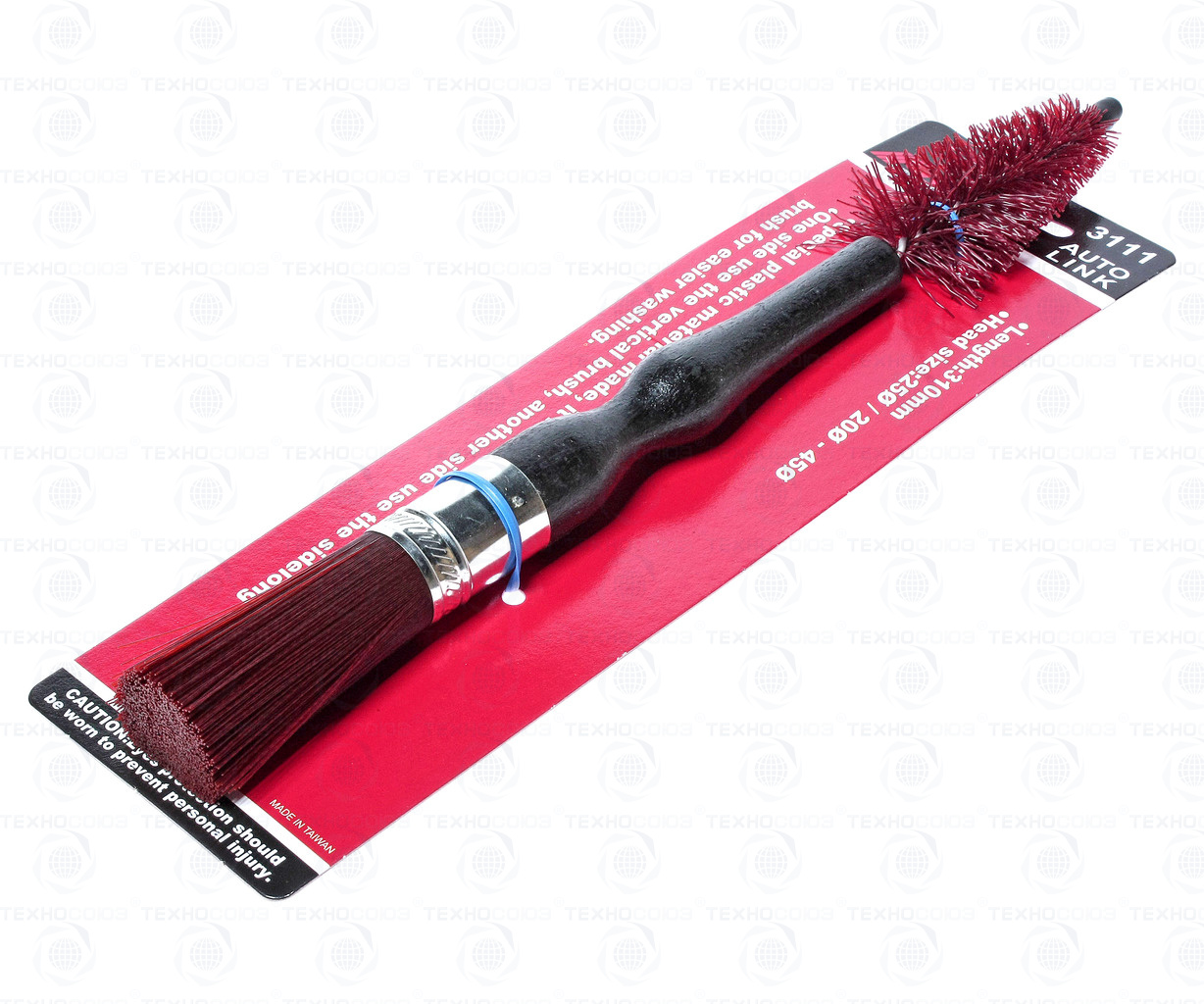 Длина: 310 мм. Размеры рабочей части: Ø25/Ø20-45. Щетинки изготовлены из специального пластика, что повышает качество очистки различных деталей. Одна сторона предназначена для вертикальной чистки (ерш), вторая - для горизонтальной чистки или мойки. Габаритные размеры: 330/45/45 мм. (Д/Ш/В) Вес: 101 гр.