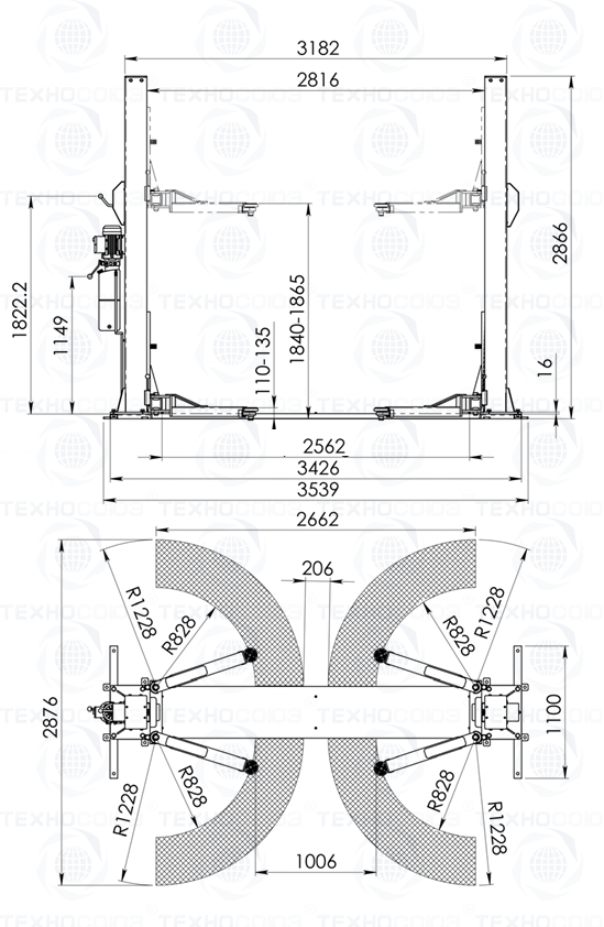 2х стоечные подъемники 3,2-3,5 тонн:  ф6мм;