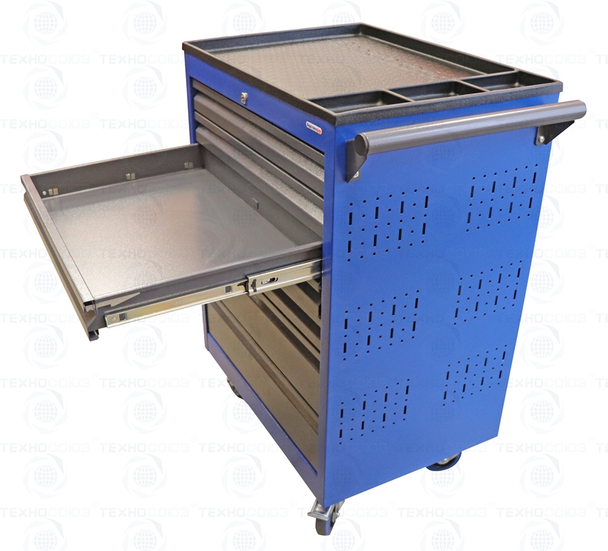 На боковые стенках тележки имеется перфорация (25х25 мм) с диаметром отверстия 8 мм. В отверстия перфорации можно устанавливать ключки и навесной инструмент.