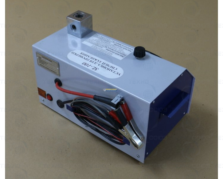 Прибор для проверки свечей зажигания, оснащен встроенным компрессором и питается от бортовой сети автомобиля 12В. Имеет два режима работы проверки свечей: на холостом ходу при 1000 оборотов и при 5.000 оборотов. Развивает давление до 10 атм! Имеет небольшие габариты. Установка SL-100 предназначена для профессионального применения в условиях станций технического обслуживания автомобилей. С помощью данного прибора проверяются свечи зажигания легковых автомобилей на пробой изолятора, правильное искрообразование. Проверка свечей осуществляется в условиях приближенных к рабочим, т.е. под давлением не менее 10 бар и в режимах искрообразования соответствующих 1000 об\мин и 5000 об\мин.