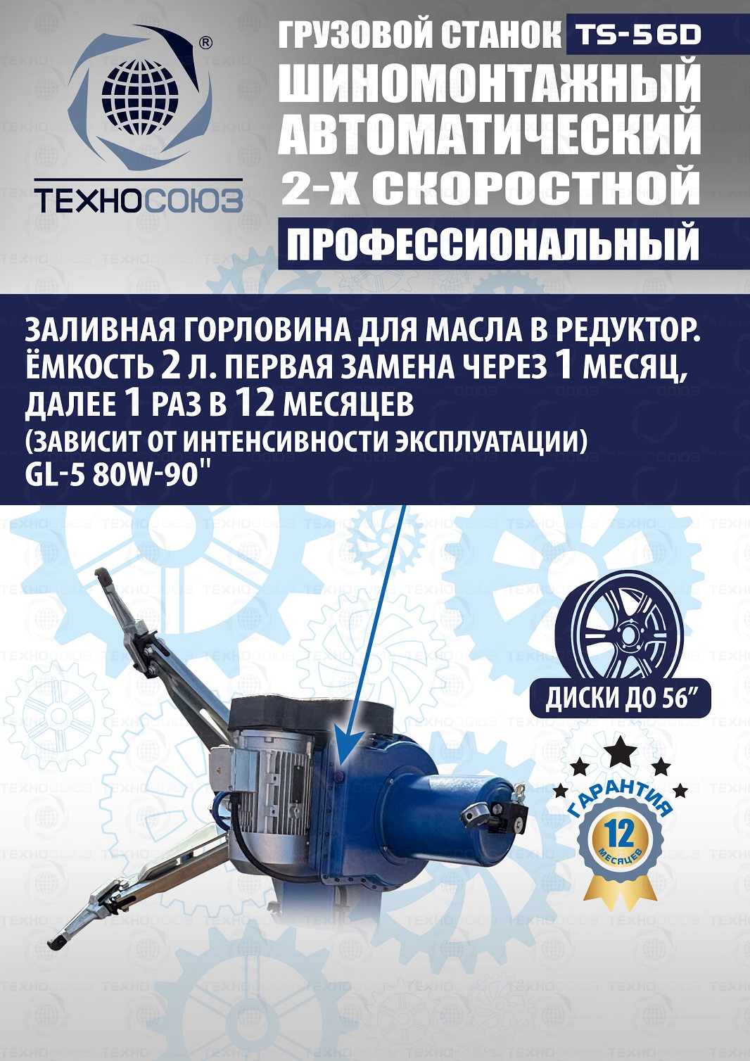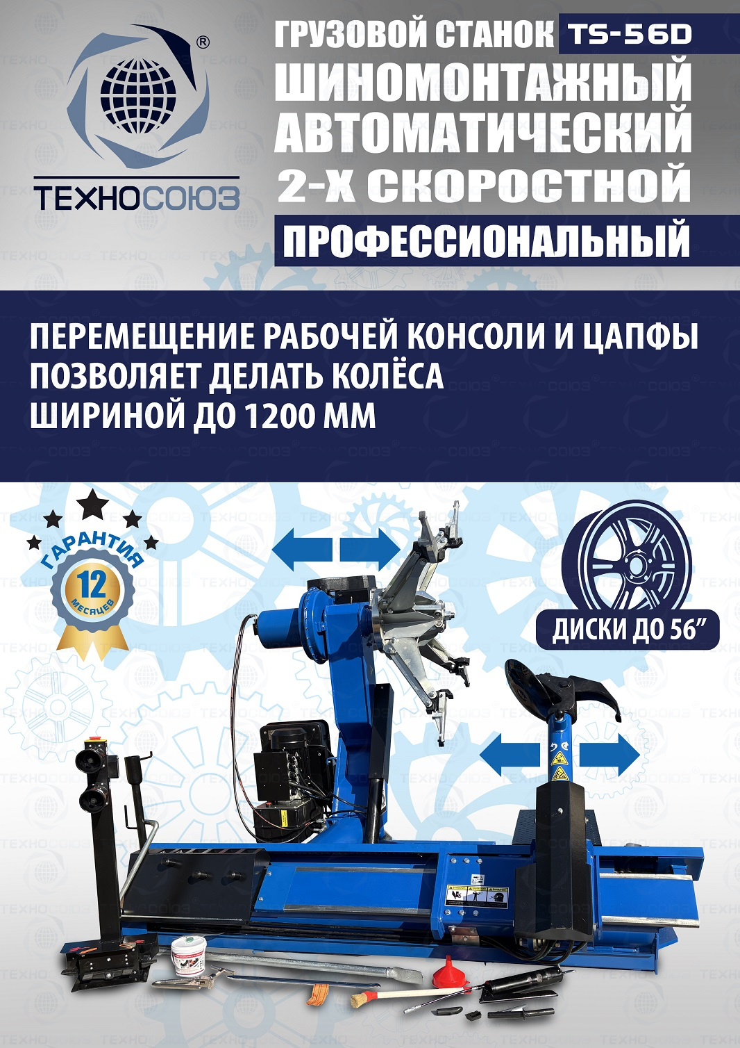 TS-56D Грузовой автоматический двухскоростной шиномонтажный станок 14-56”